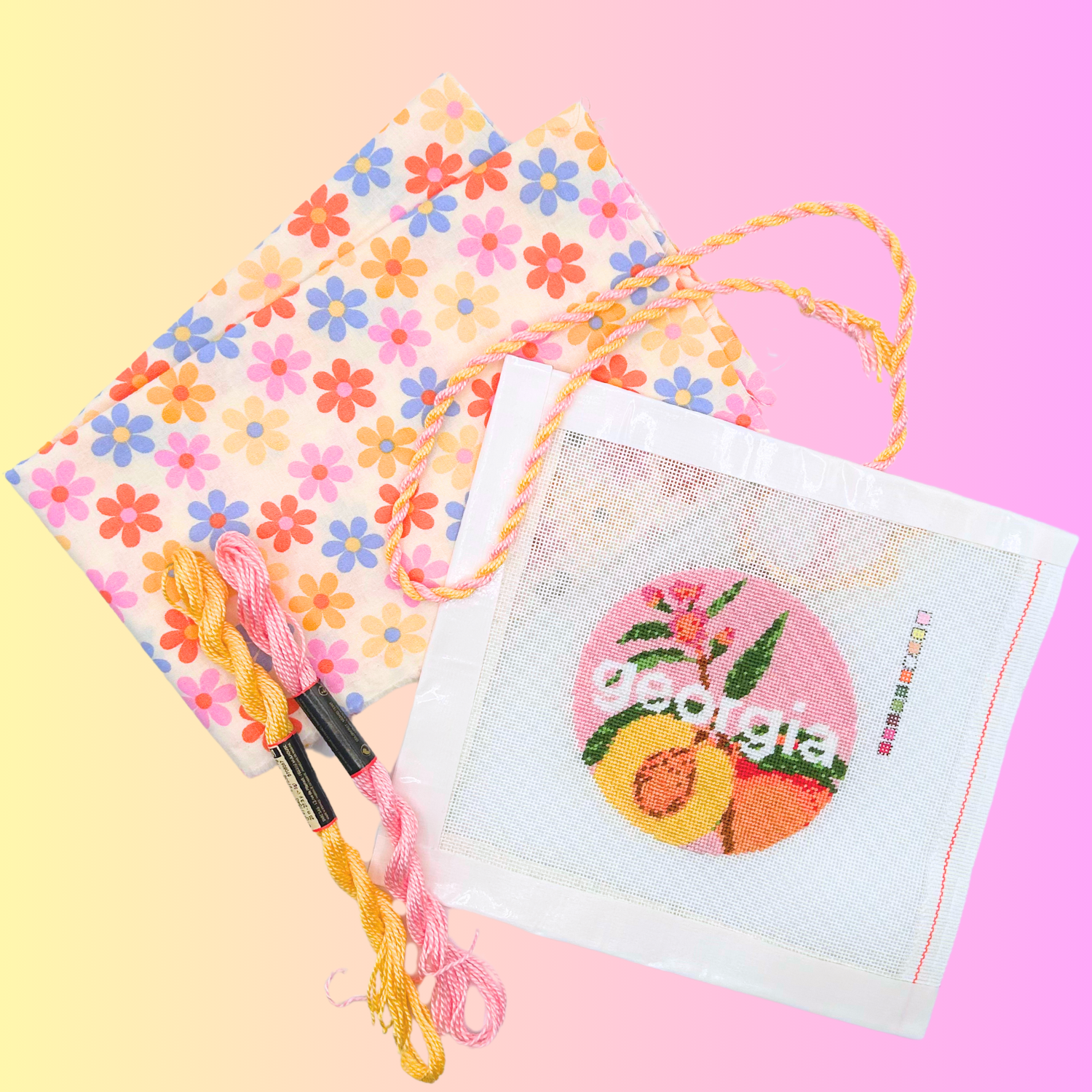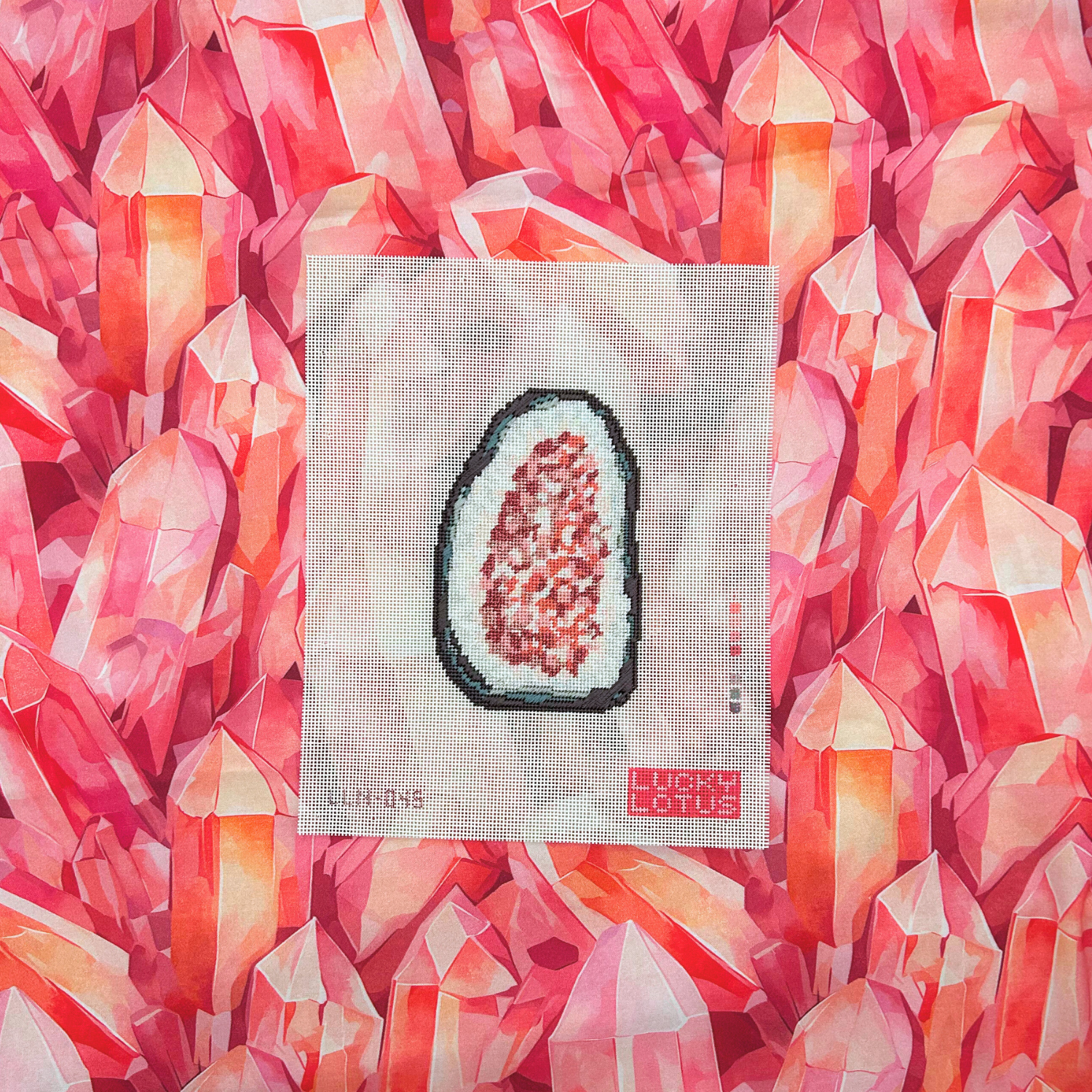 - Hand-painted needlepoint canvas (taped edges)