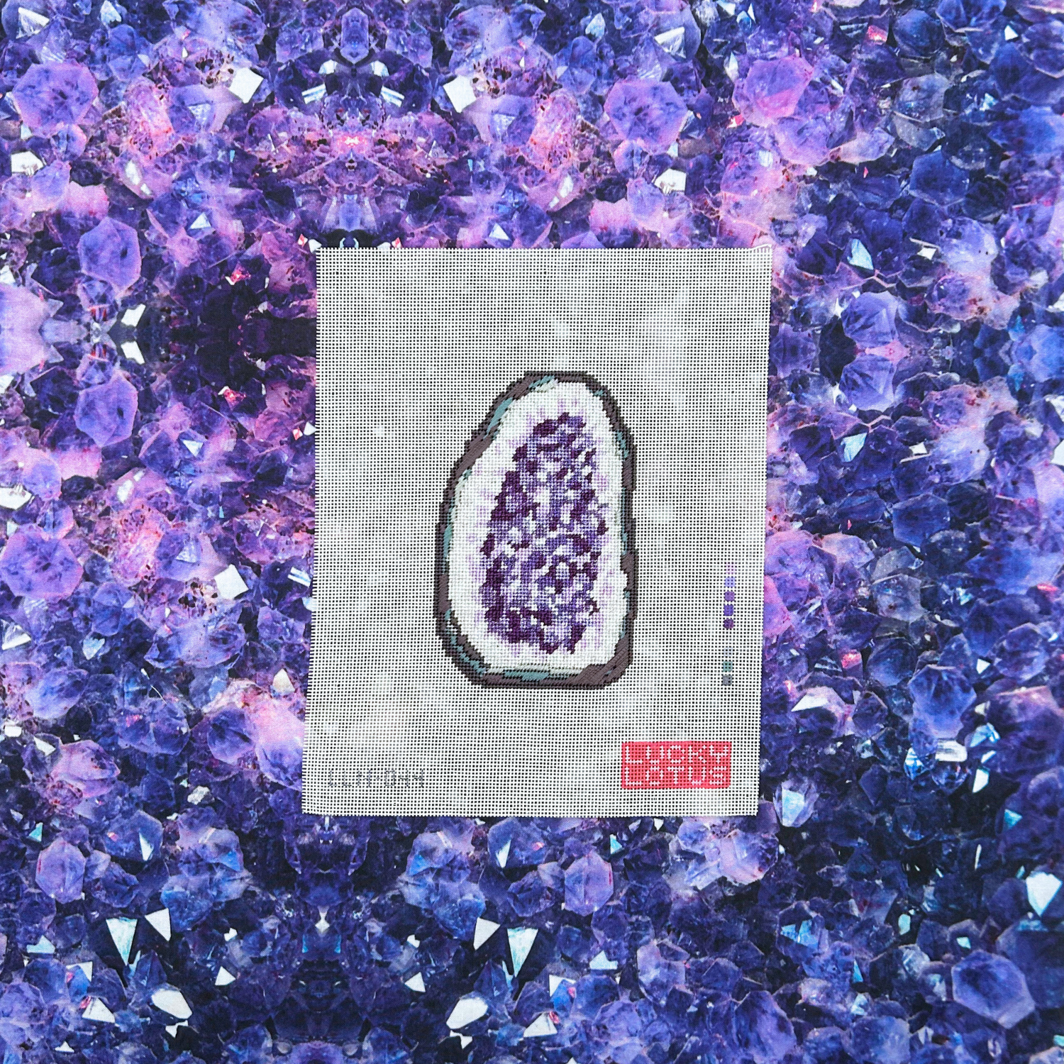 - Hand-painted needlepoint canvas (taped edges)